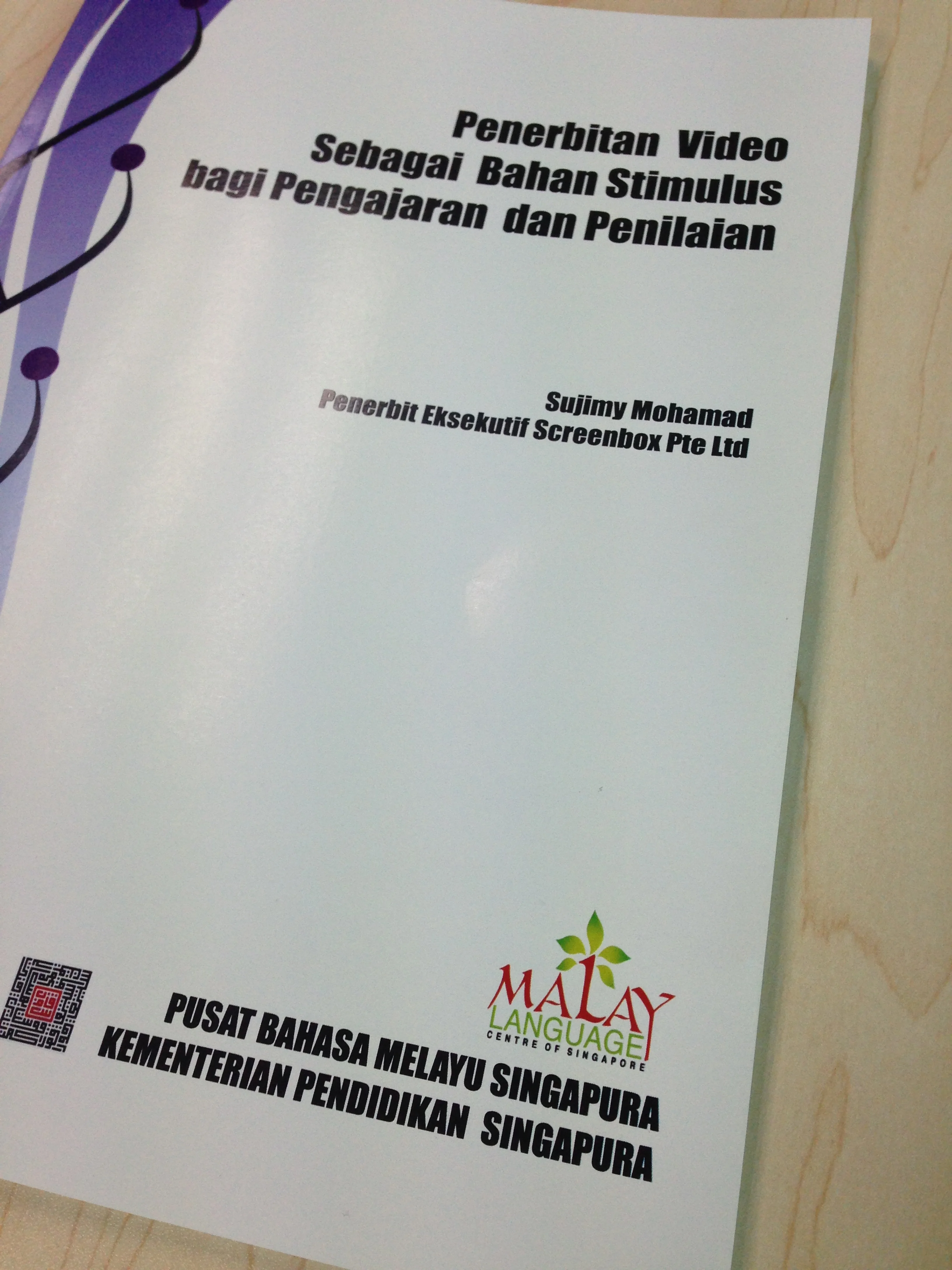 Pada bulan Ogos 2014, kami diberi peluang Pusat Bahasa Melayu Singapura, Kementerian Pendidikan Singapura, untuk menganjurkan bengkel Penerbitan Video Sebagai Bahan Stimulus bagi Pengajaran dan Penilaian. Saya gembira saranan kami untuk melatih guru-guru Melayu dalam bengkel penerbitan ini diterima pihak Pusat Bahasa Melayu Singapura. Gembira kerana, pertama, sememangnya sudah lama saya ingin mengongsi kemahiran ini kepada para guru dan kedua, kerana Pusat Bahasa Melayu Singapura mencetak sebuah manual (buku) yang mengandungi inti latihan yang saya anjurkan. Inilah kali pertama susunan latihan penerbitan video kami dicetak - sangat teruja!